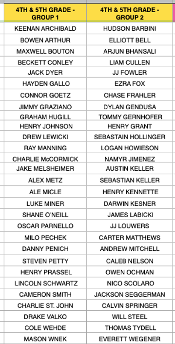 SEASON 1 - 4TH/5TH GRADE groups & practice SCHEDULE